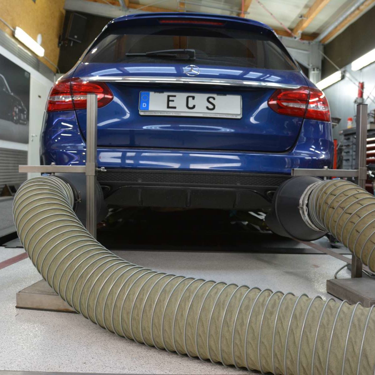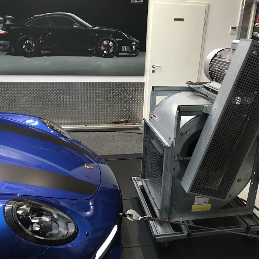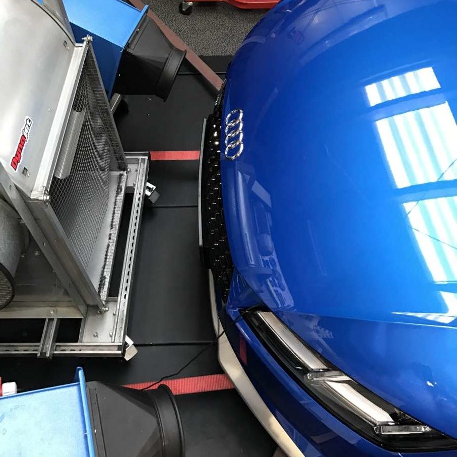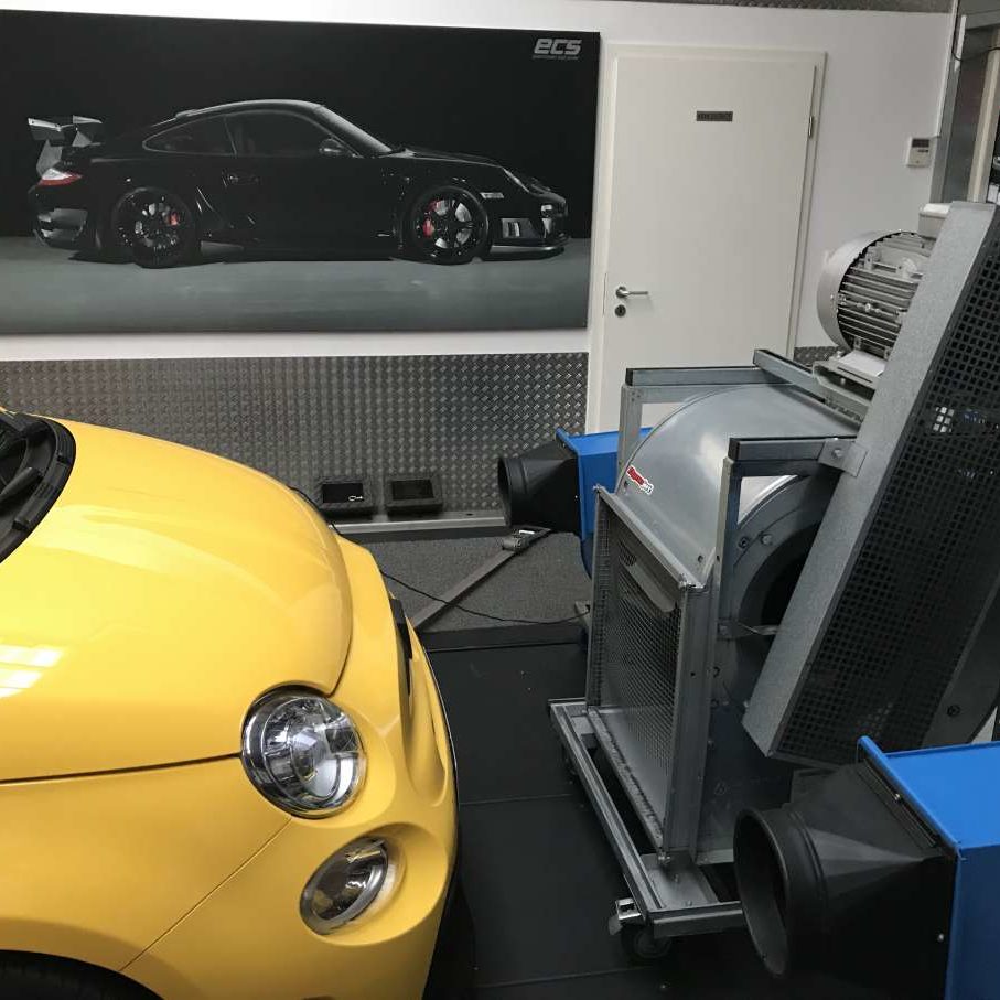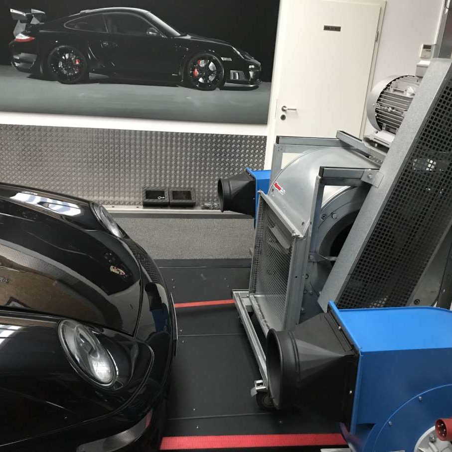 Dank unserer hocheffizienten Be- u. Entlüftungsanlage sind realistische Messbedingungen wie auf der Straße gegeben.